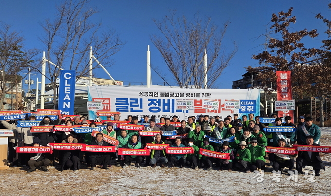 영주시는 지난 5일 가흥안뜰공원에서 (사)경북옥외광고협회 영주시지부(이상영 지부장)와 함께 ‘성공적인 불법 광고물 정비를 위한 Clean 정비대 발대식’을 열고, 깨끗하고 안전한 도시미관 조성을 위한 정비 활동의 새로운 출발을 다짐했다.