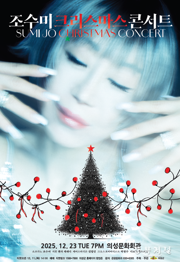 의성군(군수 김주수)은 오는 12월 23일(화) 저녁 7시 의성문화회관에서 세계적인 소프라노 조수미 크리스마스 콘서트 ‘My Secret Christmas'를 개최한다고 밝혔다.