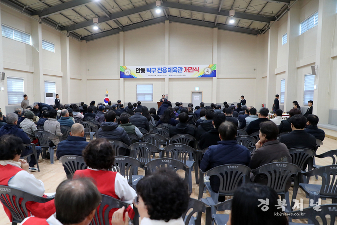 안동시 관계자는 “시민의 오랜 숙원사업이었던 탁구 전용 체육관을 드디어 개관하게 돼 매우 뜻깊다”며, “앞으로도 누구나 쉽게 스포츠를 즐길 수 있는 생활체육 환경 조성에 최선을 다하겠다”고 전했다.