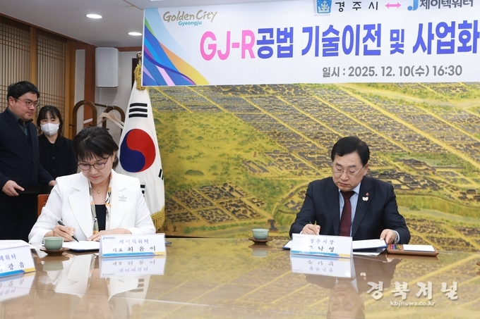 경주시는 10일 주식회사 제이텍워터와 ‘경주시 물정화 기술 1호 GJ-R 공법’의 기술이전 및 사업화 추진 협약을 체결했다고 밝혔다.