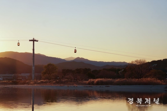겨울 저녁, 울진 왕피천의 하루는 다양한 색으로 물들어 가며 마무리된다.