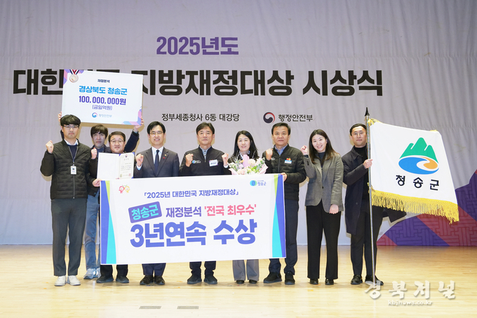 행정안전부는 전국 243개 지방자치단체를 대상으로 2025년 지방자치단체 재정분석을 실시한 결과, 청송군이 재정 건전성과 효율성을 고루 인정받아 ‘최우수 자치단체’로 선정됐다고 밝혔다.