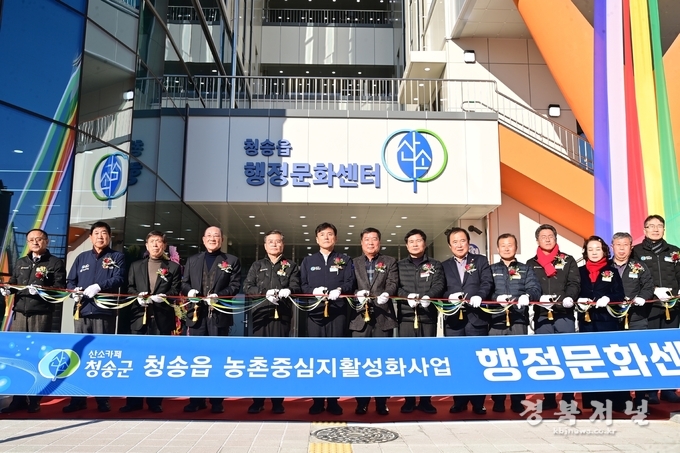 청송군(군수 윤경희)은 지난 18일 ‘청송읍농촌중심지활성화사업’의 일환으로 조성한 ‘청송읍 행정문화센터’의 준공식을 개최하였다.