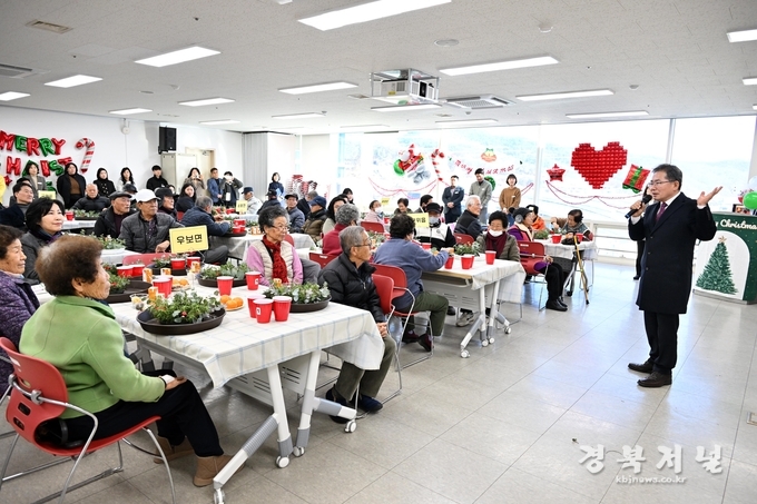 이날 행사에서는 어르신들의 몸과 마음에 활력을 불어넣는 웃음치료 프로그램을 시작으로, 겨울 분위기를 느낄 수 있는 생화 크리스마스 리스 만들기 체험이 진행되었다.