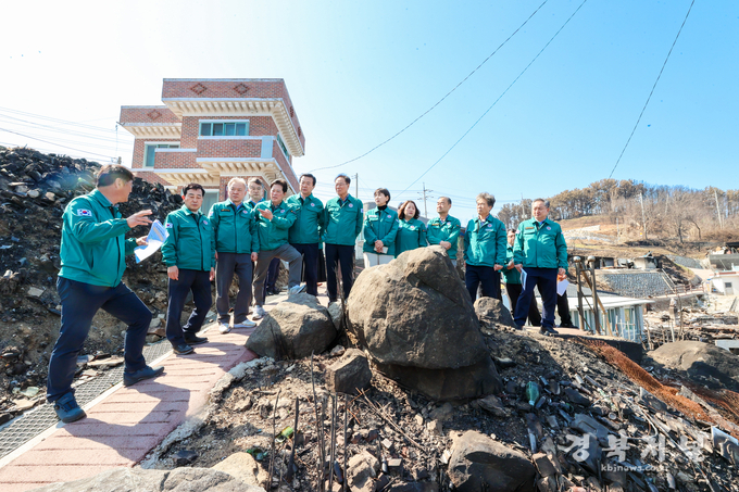 경상북도의회는 3월 23일 오전 10시 의성 산불 피해 현장을 긴급 방문하여 진화 관계자들을 격려하고 산불로 인해 긴급히 대피한 주민들의 건강 상태와 불편사항을 직접 살피며 애로사항을 청취하고, 피해 복구 지원에 최선을 다할 것임을 밝히며 주민들을 위로했다.