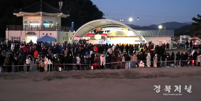 이와 함께 울진 현내항, 평해 월송정, 금강송면 박달재 정상, 후포 등기산 공원 등 각 읍면별 해맞이 명소 9곳에서도 신년 기원제, 풍물놀이, 달집태우기, 떡국 나눔 등 다양한 행사가 열려 울진 전역이 새해 분위기로 물들었다.