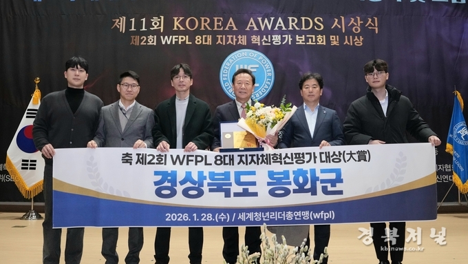 봉화군이 세계청년리더총연맹(WFPL) 부설 지자체혁신평가위원회(GEC)가 주관한 ‘제2회 WFPL 8대 지자체 혁신평가’에서 기관 부문 최고 영예인 ‘대상(大賞)’을 수상했다.