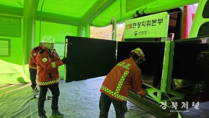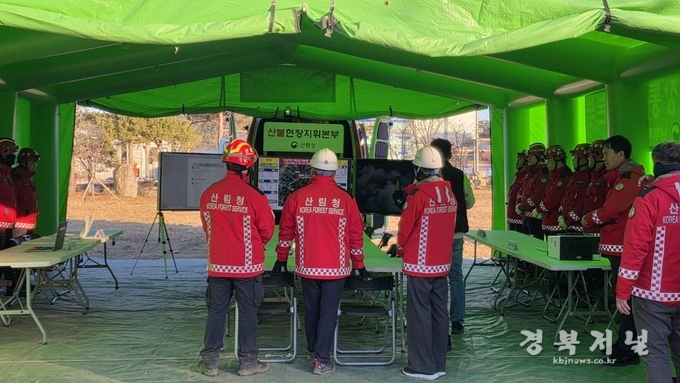 이번 훈련은 대형 산불 발생 시 일사불란한 지휘 체계를 확립하기 위한 것으로, 지휘차량 내 시스템 가동 상태를 확인하고 진화 전략 수립 과정을 함께 점검했다.