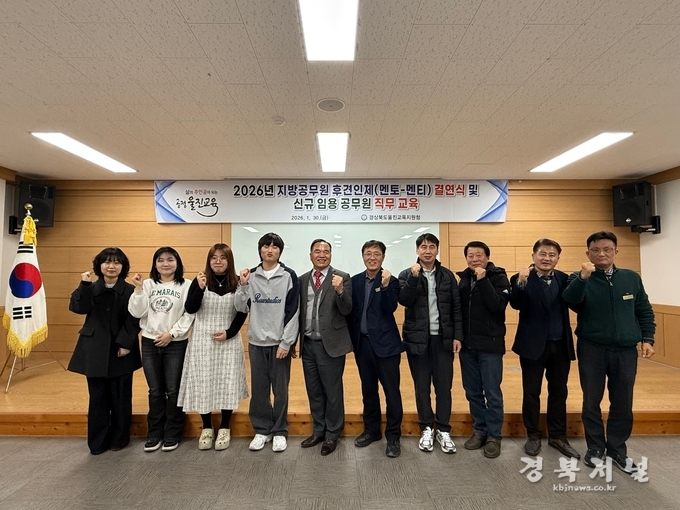 경상북도울진교육지원청(교육장 이기협)은 1월 30일(금) 울진교육지원청 3층 영재교육원에서 2026년 지방공무원 후견인제(멘토-멘티) 결연식 및 신규 임용자에 대한 직무교육을 실시하였다.