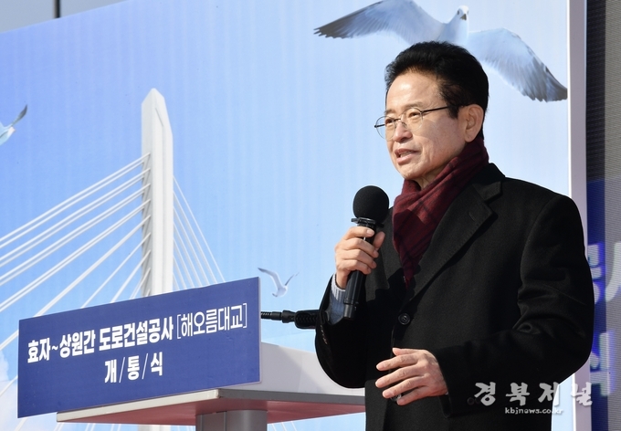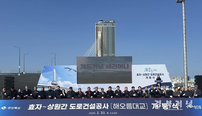 경상북도(도지사 이철우)는 31일 포항시 남구 송도동에서 북구 항구동을 잇는 해상교량(해오름대교) 건설사업인‘효자~상원 간 도로건설공사’개통식을 개최했다.