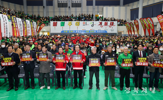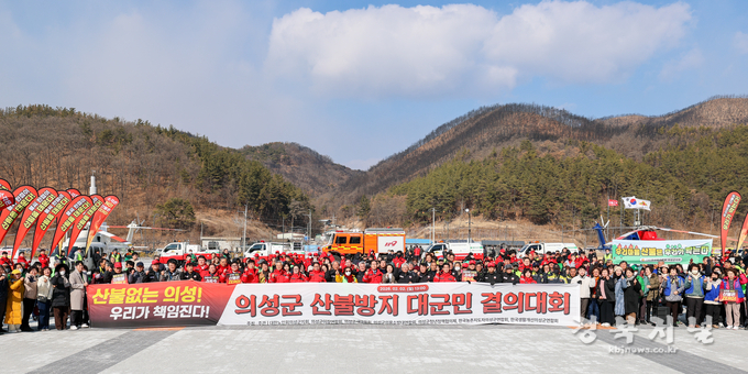 의성군(군수 김주수)은 산불 발생 위험이 높은 시기를 맞아 2월 2일, 의성종합체육관에서 산불방지 대군민결의대회를 개최하고 산불 예방을 위한 군민 실천 의지를 하나로 모았다.