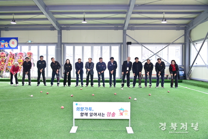 청송군(군수 윤경희)은 지난 10일 부남면 대전리 생활체육공원에서 지역 주민들의 오랜 숙원사업이었던 ‘부남 전천후 게이트볼장’ 준공식을 개최했다.