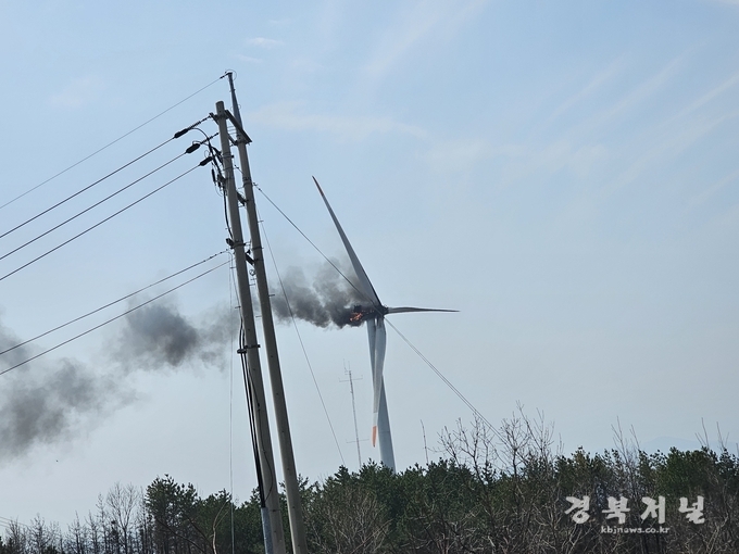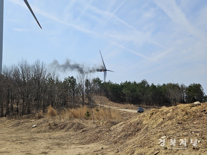 지난 23일 오후 1시11분 경 영덕군 청포리 산123-1 일대에 위치한 영덕 풍력 발전 단지에서 화재 사고가 발생했다.