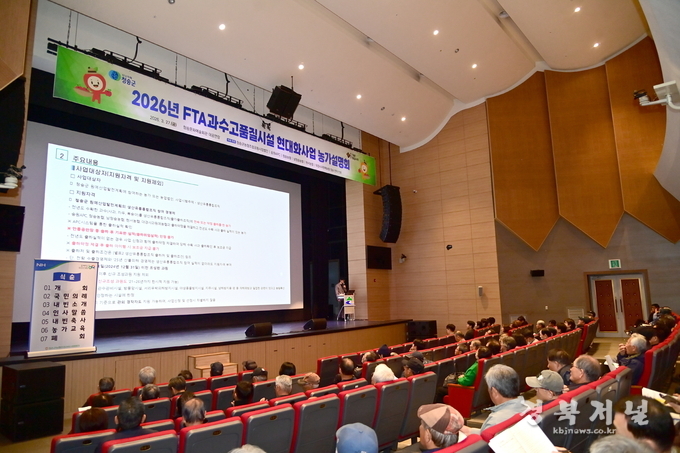 청송군은 지난 27일 청송문화예술회관 대공연장에서 청송농협조합공동사업법인(대표 김태환) 주관으로 「2026년 과수고품질시설현대화사업 설명회」를 개최했다.
