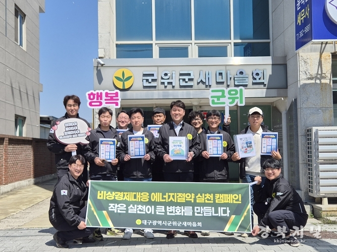 군위군새마을회는 최근 중동 사태 등 국제 정세 불안에 따른 자원안보 위기 단계가 ‘경계’로 격상됨에 따라 군민들의 자발적인 에너지 절약 실천을 유도하기 위한 릴레이 캠페인을 전개하고 있다.