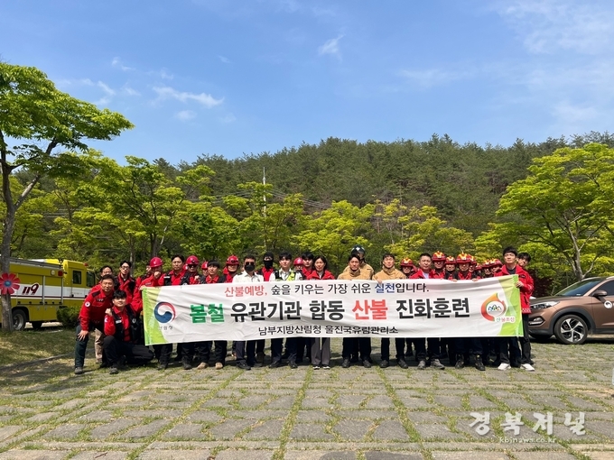 남부지방산림청 울진국유림관리소(소장 박소영)에서는 산불유관기관과의 협력 체제 구축을 통해 산불재난에 대한 선제적 대응 체계를 강화하고자 지난 4. 28.(화) 울진소방서, 동해안산불방지센터 등 40여 명이 참여한 가운데 구수곡자연휴양림에서 유관기관 합동산불진화 훈련을 실시하였다고 밝혔다.