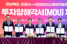 경상북도는 19일 포항시청 대회의실에서 포항시, 씨앤피신소재테크놀로지㈜와 함께 영일만4일반산업단지 내 리튬인산철배터리(LFP) 양극재 제조시설 건립을 위한 투자양해각서(MOU)를 체결했다. 이날 체결식에는 이철우 경상북도지사, 이강덕 포항시장, 도의회와 시의회 관계자, 다이주푸 씨앤피신소재테크놀로지㈜ 대표이사, 엄기천 포스코퓨처엠 대표이사, 김동환 주식회사 피노 CEO를 비롯한 기업 관계자와 관련기관 관계자 등 40여 명이 참석해 대규모 이차전지 소재 투자유치를 함께 축하했다. ■ 총 5,000억 원 투자… 포항에 LFP 양극재 생산 거점 구축 이번 협약에 따라 씨앤피신소재테크놀로지㈜는 2026년부터 2030년까지 총 5,000억 원을 투자해 포항 영일만4일반산업단지 내 약 4만5천㎡(1만3,670평) 부지에 에너지저장장치(ESS)와 전기자동차용 LFP 양극재 제조시설을 단계적으로 구축할 계획이며, 이를 통해 약 250명의 신규 고용이 창출될 것으로 기대된다. 해당 사업은 1단계와 2단계로 나눠 추진되며, 초기에는 ESS와 전기차용 LFP 양극재 생산을 중심으로 공장을 구축하고, 향후 시장 여건과 수요에 맞춰 전구체 사업도 단계적으로 추진할 방침이다. 씨앤피