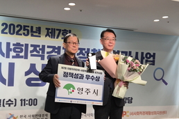 영주시는 지난 26일 한국YWCA연합회에서 열린 ‘2025년 제7회 지방자치단체 사회적경제 정책평가’에서 정책성과 부문 우수상을 수상했다고 밝혔다. 사회적경제 정책평가는 고용노동부와 사회적경제활성화전국네트워크가 공동 주최하며, 사회적경제 정책의 이해도를 높이고 더 나은 정책 수립을 지원하기 위해 마련된 제도다. 이번 평가는 전국 17개 시·도 광역자치단체와 226개 기초자치단체를 대상으로 △정책기반 정비 △지원 수준 △정책 성과 △거버넌스 수준 등을 종합적으로 평가해 최종 11개 우수 자치단체를 선정했다. 영주시는 ‘사회적경제 육성 및 지원에 관한 조례’와 ‘연도별 사회적경제 육성 지원계획’을 기반으로 사회적경제 기업의 판로 확대 및 자생력 강화를 위한 다양한 사업을 적극적으로 추진한 점에서 높은 평가를 받았다. 또한 도내 유일한 중간지원 조직인 영주시사회적경제지원센터의 전략적 지원과 현장 중심 활동이 핵심 성과로 인정 받았다. 정교완 일자리경제과장은 “이번 수상은 행정뿐만 아니라 시민과 사회적경제조직이 모두 협력해 만든 공동의 성과”라며 “앞으로도 지속가능한 지역 성장과 공동체 가치를 만드는 핵심 동력인 사회적경제 정책을 확대하고 지원해 나갈 것”이라고 밝