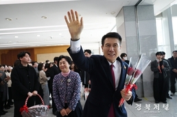 이강덕 포항시장이 ‘함께하는 변화, 도약하는 포항’을 기치로 시작한 12년간의 시정을 마무리했다. 포항시는 9일 민선 6·7·8기 동안 시정을 이끌어 온 이강덕 시장의 퇴임 행사를 개최했다. 이날 행사는 그간의 시정 운영을 마무리하고 전 직원과 석별의 정을 나누는 자리로 마련됐다. 이날 일정은 덕수동 충혼탑 참배로 시작됐다. 이 시장은 장상길 부시장과 각 구청장 등 간부 공무원들과 헌화·분향하며 순국선열과 호국영령의 뜻을 기렸다. 퇴임식에 앞서 이 시장은 시청 중회의실에서 사무인계인수서에 서명하며 행정의 연속성과 안정적인 시정 운영을 당부하고, 15층 구내식당부터 의회동 지하 1층까지 청사 각 층을 돌며 직원들에게 감사 인사를 전했다. 문화동 대잠홀에서 열린 퇴임식에는 직원 600여 명이 참석했다. 행사는 시립교향악단의 식전 공연을 시작으로 ▲퇴임 기념 영상 상영 ▲재직 기념패 및 공로패 전달 ▲직원 대표 송사 ▲퇴임사 ▲시립합창단 환송가 순으로 진행됐다. 특히 시는 퇴임 기념 영상 상영과 재직기념패·공로패 전달을 통해 12년간의 노고와 헌신에 대한 감사와 예우의 뜻을 전했으며, 시립합창단이 선보인 ‘아름다운 나라’와 ‘슈퍼스타’를 환송곡으로 차분한 분위기