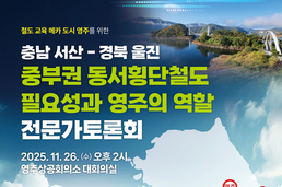 영주시는 오는 26일 오후 2시, 영주상공회의소 대회의실에서 ‘충남 서산 경북 울진 중부권 동서횡단철도 필요성과 영주의 역할’ 전문가 토론회를 개최한다. 이번 토론회는 단순한 정책 설명회를 넘어, 중부권의 교통·산업 구조를 근본적으로 재편할 ‘동서축 철도 대전환’의 필요성을 지역에서 직접 제기하고 논의하는 출발점이라는 점에서 의미가 크다. 특히 그동안 동서축 연결이 취약했던 중부권의 교통 체계와 물류 흐름을 전면적으로 재구성할 수 있는 전략이 지자체와 전문가의 협업을 통해 본격적으로 논의될 예정이다. 중부권 동서횡단철도는 서산 당진 아산 청주 문경 영주 봉화 울진을 잇는 총 330km 규모의 광역 철도 프로젝트로, 새 정부 국정운영계획에 포함된 대통령 지역공약사업이다. 이 철도가 구축되면 중부권은 새로운 국가 동서 대동맥을 갖추게 되며, 향후 국가균형발전 전략의 핵심축으로 부상할 것으로 전망된다. 최근 영주시에는 한국동서발전의 1조 2천억 원 규모 수소발전소(무탄소 전원개발사업) 유치가 추진되며 지역 산업 구조가 큰 전환점을 맞고 있다. 이 발전소에 공급될 핵심 연료인 수소는 울진에서 생산·공급되며, 안정적이고 대량 운송이 가능한 철도 기반의 물류 체계가 필