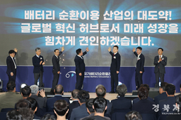 포항 블루밸리 국가산업단지에 있는 국가 배터리 자원순환클러스터가 4일 개소식을 하고 공식 운영을 시작한다. 이날 개소식에는 김고응 기후에너지환경부 자원순환국장, 최혁준 경상북도 메타AI과학국장, 이강덕 포항시장, 정재웅 한국환경공단 자원순환이사 등 관계기관과 산·학·연 인사 등 200여 명이 참석해 출범을 축하했다. 국가 배터리 자원순환 클러스터는 총사업비 489억원을 투입해 완공된 기후에너지환경부의 배터리 재활용 연구·지원을 위한 국가 시설로 한국환경공단이 위탁 운영을 맡는다. 1만 7,000㎡ 부지에 총면적 9,401㎡ 규모로 조성된 클러스터의 주요 시설은 기업 지원을 위한 종합정보지원센터와 기술개발을 위한 자원순환연구센터 등 두 개의 핵심동으로 구성되어 있다. 특히, 전기차 사용후 배터리의 재활용 및 재사용을 기반으로 하는 국가 순환경제 핵심 인프라로, 배터리 재활용 핵심기술 개발, 실증 테스트베드 운영, 이력관리 및 표준화 컨트롤 타워, 기업 사업화 지원 등을 패키지로 수행하는 국내 최초 통합형 자원순환 산업 거점으로 구축된 것에 의미가 있다. 경상북도는 이번 클러스터 개소가 단순한 국가 기반 시설을 넘어 그동안 포항을 중심으로 구축해 온 배터리 순환