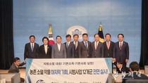 봉화군은 10월 29일 국회에서 농어촌 기본소득 시범사업 1차 심사를 통과한 12개 군의 전면 시행을 촉구하는 공동성명을 발표했다. 이날 공동성명문은 최종 선정에서 제외된 봉화, 진안, 장수, 곡성, 옥천 5개 군이 뜻을 함께했다. 농어촌 기본소득 시범사업은 인구감소, 고령화 등 농어촌 활력 저하에 따른 소멸 현상에 긴급히 대응하기 위해 정부가 국정과제로 추진 중인 사업이다. 선정지역 거주 주민에게 월 15만 원 상당의 지역사랑상품권을 지급해 농어촌 지역 지킴이 역할을 해온 주민의 공익적 기여에 대한 보상이자, 지역경제 활성화 마중물 역할을 한다는 데 큰 의미가 있다. 농림축산식품부는 인구감소지역 69개 군을 대상으로 공모를 실시해 총 49개 군(71%)의 신청을 받았으며, 1차 서류심사를 통해 12개 군을 선정한 후 최종 7개 군(경기 연천·강원 정선·충남 청양·전북 순창·전남 신안·경북 영양·경남 남해)을 시범사업 대상지로 선정한 바 있다. 봉화군은 이번 공모에서 △전 군민 월 17만 원 지급안(기본 15만원 + 군비 추가 2만원) △통합재정안정화기금과 순세계잉여금을 활용한 안정적 재원 확보 △읍·면 단위 가맹점 확대 및 지역화폐 순환경제 구축 등 봉화형