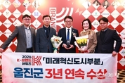 울진군은 2월 25일 서울 더 플라자호텔에서 열린‘2025 K-브랜드 어워즈’시상식에서 3년 연속 미래혁신도시 부문 대상을 수상했다. TV조선이 한국 대표 브랜드의 우수성을 알리고 응원하기 위해 제정된 ‘2025 K-브랜드 어워즈’는 국가 경제 발전에 기여한 우수 콘텐츠 및 기업과 기관의 브랜드를 선정하여 수여하는 상이다. 울진군은 울진형 복지체계와 수소 산업생태계 구축을 통해 지방소멸의 위기를 극복하고 지역발전과 더불어 탄소중립시대에 국가 경쟁력을 높일 수 있는 기반을 마련한 공로를 인정 받았다 군은 ▲ 울진 원자력수소 국가산단 유치 ▲울진형 복지체계 구축 ▲울진관광 1,000만 시대 준비 ▲농·어업과 산림의 대전환 ▲군민과 소통하고 섬기는 행정 등을 추진해 지방정부 시대를 선도할 수 있는 미래혁신도시의 기틀 마련에 노력하고 있다. 울진군 관계자는“이번 수상은 울진의 변화와 도전을 군민 모두와 함께 추진해 온 결과”라며“우리군은 앞으로 원자력수소 국가산단을 성공적으로 조성해 울진의 미래 100년을 열고, 아이부터 어르신까지 모든 세대가 안심하고 행복할 수 있는 전국 최고의 복지도시 울진을 반드시 완성할 것”이라고 전했다. 최선학 기자 kbnews7005@h