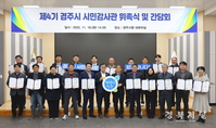경주시는 18일 시민 참여를 통한 투명하고 신뢰받는 시정 구현을 목표로 ‘제4기 시민감사관 위촉식’을 개최했다. 이번 위촉을 통해 시민의 시정 감시 기능을 한층 강화하고, 현장 중심의 청렴 행정을 실천하기 위한 체계를 재정비했다. 시는 2019년부터 ‘시민감사관 제도’를 운영하며, 반부패, 청렴 문화 확산과 제도개선에 시민의 시각을 적극 반영해 왔다. 그동안 생활불편 해소, 공사, 용역 현장 모니터링 등 실질적인 개선 성과를 축적해 온 바 있다. 이번에 위촉된 시민감사관은 연임 16명과 신규 9명 등 총 25명으로, 다양한 분야의 전문가들로 구성됐다. 이들은 앞으로 2년간 무보수 명예직으로 △불편·부당 사항 제보 △불합리한 제도 관행 시정 건의 △전문분야 자문 제공 △각종 시설 운영 실태 및 재난위험시설물 합동점검 등 시정 전반의 감시, 자문 활동을 수행한다. 특히 제3기 감사관들은 2025년 APEC 정상회의의 성공 개최를 위해 선진시민의식 확산 캠페인을 전개하며 친절·청렴 문화를 지역사회 전반으로 확산시키는 데 기여해 긍정적인 평가를 받았다. 송호준 경주시 부시장은 “청렴은 행정의 신뢰를 결정하는 기본 원칙”이라며, “시민감사관이 청렴 파수꾼으로서 시정