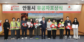 안동시는 12월 8일(월) 웅부관 청백실에서 ‘2025년 경북 찾아가는 이웃돕기 유공자 포상식’을 가졌다. 이번 포상식은 묵묵히 나눔과 봉사를 실천하며 따뜻한 공동체 문화를 확산시키는 데 앞장선 개인과 단체의 공로를 기리기 위해 마련된 자리였다. 포상식에서는 꾸준한 기부와 나눔문화 확산에 기여한 공로로 △안동학가산마깍두기김치 우국한 대표와 인덕의료재단 이윤환 이사장이 경상북도의회의장상을, △나누리재단과 안동시지역사회보장협의체, 나눔봉사단 김정순, 이명숙 단원이 각각 공동모금회장상을 수상했다. 황경희 경북모금회 부회장은 “유공자분들이 보여주신 따뜻한 마음이 올겨울 안동 곳곳에 큰 힘이 될 것”이라며 “소중한 성금이 어려운 이웃들에게 제대로 전달되도록 모금회도 최선을 다하겠다”고 전했다. 안동시 관계자는 “안동의 나눔 문화를 앞장서 실천해 주신 유공자 여러분께 진심으로 감사드리고, 수상을 축하드린다”며 “우리 시에서도 도움이 필요한 시민을 더욱 세심하게 살피고 복지 지원을 강화하겠다”고 밝혔다. 최선학 기자 kbnews7005@hanmail.net
