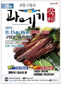 포항시는 오는 11월 15일부터 16일까지 양일간, 국내 최대 과메기 생산지인 구룡포 아라광장 일원에서 ‘제26회 포항 구룡포 과메기 축제‘를 개최한다고 밝혔다. 이번 축제는 포항구룡포과메기사업협동조합이 주관하며, 지역 특산물인 과메기의 소비 촉진과 지역경제 활성화를 목표로 마련됐다. 축제 기간 동안 신선한 구룡포 과메기를 시중보다 저렴하게 구매할 수 있는 할인 판매장이 운영된다. 또한 과메기가요제, 깜짝 경매쇼, 과메기 먹고 힘자랑 등 시민과 관광객이 함께 즐길 수 있는 다양한 참여형 프로그램이 준비돼 있다. 특히 과메기를 처음 접하는 관광객을 위해 ‘과메기 김밥 시식 부스’도 마련된다. 과메기의 풍미를 살리면서도 부담 없이 즐길 수 있도록 구성돼, 남녀노소 누구나 구룡포 과메기의 색다른 매력을 맛볼 수 있을 것으로 기대된다. 차가운 겨울 바람과 청정한 바다의 조화로 탄생하는 구룡포 과메기는 특유의 고소한 풍미와 함께 풍부한 영양소로 손꼽힌다. 칼슘, 오메가3, 아스파라긴산, 비타민 등이 풍부해 면역력 증진과 피로회복에 도움을 주며, 술안주는 물론, 해초·야채를 곁들여 반찬이나 간식으로도 즐길 수 있는 포항의 대표 겨울철 별미로 자리매김했다. 포항시 관계자