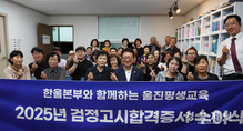 울진희망학교(교장 박진규)는 지난 9월 24일 울진종합터미널 2층 교실에서‘2025년 검정고시 합격증서 수여식’을 가졌다. 이번 수여식에는 희망학교 출신 후원자들과 합격생, 자원봉사 교사 등 40여 명이 참석한 가운데 진행됐다. 손병복 울진군수를 비롯해 희망학교 관계자와 여러 내빈이 참석해 합격자들을 축하했다. 수여식은 합격증서 전달, 격려사, 감사인사 순으로 진행되어 늦깎이 배움의 결실을 맺은 학생들에게 큰 격려와 용기를 주었다. 올해 검정고시에는 총 8명(중등2명, 고등6명)이 합격했으며, 이 중 최고령 합격자는 1948년생으로 참석자들에게 특별한 울림을 전했다. 합격생들은 배움의 기회를 제공하고 든든히 곁을 지켜준 학교 관계자와 자원봉사 교사들에게 깊은 감사를 전하며, 다양한 합격 소감을 나누어 큰 박수를 받았다. 한편, 2018년부터 죽변에서 시작된 울진희망학교는 학력 취득에 어려움을 겪는 주민들을 위해 초·중·고등 과정의 검정고시 교육 및 디지털교육, 성인영어, 한글문해 등 다양한 평생교육 프로그램을 꾸준히 제공하고 있다. 손병복 울진군수는“배움에 대한 열정으로 힘든 시간을 이겨낸 학생들의 합격증 취득을 진심으로 축하드린다”며“군은 앞으로도 고품격의