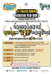 안동시 풍산시장이 100년의 시간을 거슬러 올라가 옛 장터의 활기를 재현한다. 안동시는 오는 4월 25일(토)과 5월 9일(토) 이틀간 풍산장터 일원에서 ‘1917 풍산장 동행축제 「백년장터의 맛과 이야기」’를 개최한다. 이번 축제는 1917년부터 이어온 풍산장의 역사성을 알리고, 소상공인과 소비자가 함께 즐기는 상생의 장으로 마련됐다. 축제 기간 풍산장터는 과거로 여행을 떠난 듯한 이색적인 풍경으로 채워진다. ‘1917 주막거리’에서는 안동소주와 한우 불고기, 장터국밥 등 풍산만의 먹거리를 시음하거나 맛볼 수 있으며, ‘장돌뱅이 장터’에서는 보부상 프리마켓과 엿장수, 뻥튀기 등 추억의 주전부리가 관람객을 맞이한다. 이와 함께 국악 공연, 즉석 노래자랑, 장터 버스킹 등이 어우러진 ‘1917 장터공연’이 축제의 흥을 돋울 예정이다. 방문객들을 위한 파격적인 혜택과 이벤트도 풍성하다. 축제 전용 엽전(쿠폰) 구매 시 20% 할인 교환 이벤트가 진행돼 알뜰한 장보기가 가능하며, 장터 경매와 흥정 이벤트 등 전통시장만의 재미를 살린 프로그램도 운영된다. 특히 풍산읍 중심상권에서 3만 원 이상 구매한 영수증을 지참하면 ‘순금 1돈’의 주인공이 될 수 있는 경품 응모