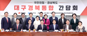 경상북도(도지사 이철우)와 국민의힘(경북도당위원장 구자근)은 26일 국회의원회관에서 대구경북통합 간담회를 열고 지역 국회의원의 다양한 의견을 수렴하고 국회와의 협력방안을 논의했다. 이날 간담회에는 이철우 경북도지사와 국민의힘 구자근 경북도당 위원장, 경북지역 국회의원과 경상북도 주요 간부들이 참석했다. 이철우 경북도지사는 인사말에서“경북은 2019년부터 전국에서 가장 먼저, 가장 적극적으로 통합 논의를 시작해왔다. 정부가 광역 통합 시 행정·재정·제도적 지원을 책임지겠다고 한 만큼 지금이 통합의 적기이다.”면서 “경북의 특별법안은 충남·대전, 광주·전남이 상당수 참고할 정도로 이미 준비되어 있다. 국회에서 대구경북통합에 대해 많은 관심을 갖고 적극적으로 지원해 주길 당부드린다.”고 말했다. 구자근 도당위원장은“행정통합은 대구경북의 미래에 관한 중요한 사항”이라면서 “성장동력 약화, 수도권 집중 등으로 통합은 이미 시대적 흐름이다. 시도민의 삶에 큰 변화를 불러오는 만큼 타이밍과 속도가 중요하다. 꼼꼼하게 점검하고 지역의 목소리를 대변하겠다.”고 언급했다. 이어 송언석 국민의힘 원내대표 역시 대구경북 통합은 중요한 사항이라고 강조하며“대구경북이 가장 먼저 시작