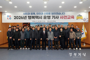 안동시는 2월 24일(화) 웅부관 청백실에서 2026년 행복택시 운행기사 사전교육을 실시했다. 앞서 시는 공개모집을 통해 33명의 전일제 기사를 선발했으며, 이날 교육은 선발된 기사를 대상으로 2026년 행복택시 운영계획과 협약 주요내용을 설명하고, 안전하고 공정한 운행을 당부하기 위해 마련됐다. 이날 교육에서는 행복택시 어플(DRT) 사용방법과 돌발상황 대처요령을 안내했으며, 운행거부ㆍ호출 불응ㆍ요금 임의조정ㆍ운행구역 이탈 등 주요 민원 예방을 위한 준수사항을 강조하고, 특히 공정한 배차와 성실하고 안전한 운행의 중요성을 재차 당부했다. 이번에 선발된 기사들은 10개 면에 배치돼 3월 1일부터 운행을 시작하며 주 6일, 1일 8시간 운행한다. 최저 운임을 보장해 안정적인 운행 여건을 마련하고 사기 진작을 위해 운행실적에 따라 정액 및 정률 인센티브를 지급할 예정이다. 안동시 행복택시는 시내버스 미운행 지역 및 1일 2회 이하 운행 지역, 가장 가까운 버스승강장으로부터 0.8km 이상 떨어진 마을의 교통취약지역 주민과 임산부 및 영아 보호자, 농촌지역 중ㆍ고등학생 등을 대상으로 운영되는 교통복지 사업이다. 권기창 안동시장은 “행복택시는 교통취약지역 주민들의