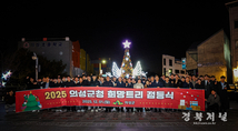의성군(군수 김주수)은 12월 1일 군청 소공원에서 한 해 동안 수고한 군민들에게 감사의 마음을 전하고 희망찬 새해를 기원하는 ‘희망트리 점등식’을 개최했다. 이날 점등식에는 김주수 의성군수, 최훈식 의성군의회 의장, 군 직원 등 200여 명이 참석하였으며 ▲점등식 개회 ▲인사말씀 ▲희망트리 점등 ▲기념촬영 순으로 진행되었다. 올해 희망트리는 ‘한 해 수고한 모든 분들께 밝은 달과 별빛으로 사랑과 온기를 전하고, 새해에는 활력 넘치는 행복의성을 함께 만들어 나가자’라는 의미로 꾸며졌다. 매년 연말 군민과 방문객들에게 특별한 추억을 제공하는 대표적인 겨울 행사로 자리 잡고 있다.. 김주수 의성군수는 “희망트리의 따뜻한 불빛이 군민들에게 위로와 용기를 전하는 시간이 되었기를 바란다”며 “밝고 희망찬 2026년을 향해 다 함께 나아갈 수 있도록 최선을 다하겠다”고 말했다. 한편, 의성군은 희망트리를 2026년 2월까지 점등해 군민과 관광객에게 희망과 힐링의 공간을 제공할 예정이다. 최선학 기자 kbnews7005@hanmail.net