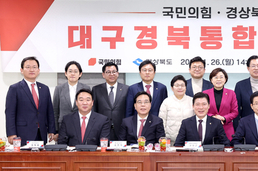 경상북도(도지사 이철우)와 국민의힘(경북도당위원장 구자근)은 26일 국회의원회관에서 대구경북통합 간담회를 열고 지역 국회의원의 다양한 의견을 수렴하고 국회와의 협력방안을 논의했다. 이날 간담회에는 이철우 경북도지사와 국민의힘 구자근 경북도당 위원장, 경북지역 국회의원과 경상북도 주요 간부들이 참석했다. 이철우 경북도지사는 인사말에서“경북은 2019년부터 전국에서 가장 먼저, 가장 적극적으로 통합 논의를 시작해왔다. 정부가 광역 통합 시 행정·재정·제도적 지원을 책임지겠다고 한 만큼 지금이 통합의 적기이다.”면서 “경북의 특별법안은 충남·대전, 광주·전남이 상당수 참고할 정도로 이미 준비되어 있다. 국회에서 대구경북통합에 대해 많은 관심을 갖고 적극적으로 지원해 주길 당부드린다.”고 말했다. 구자근 도당위원장은“행정통합은 대구경북의 미래에 관한 중요한 사항”이라면서 “성장동력 약화, 수도권 집중 등으로 통합은 이미 시대적 흐름이다. 시도민의 삶에 큰 변화를 불러오는 만큼 타이밍과 속도가 중요하다. 꼼꼼하게 점검하고 지역의 목소리를 대변하겠다.”고 언급했다. 이어 송언석 국민의힘 원내대표 역시 대구경북 통합은 중요한 사항이라고 강조하며“대구경북이 가장 먼저 시작