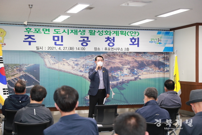 울진군(군수 전찬걸)은 지난 27일 후포면사무소 2층 회의실에서 후포면 도시재생 활성화계획(안) 수립을 위한 주민공청회를 개최했다.