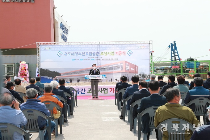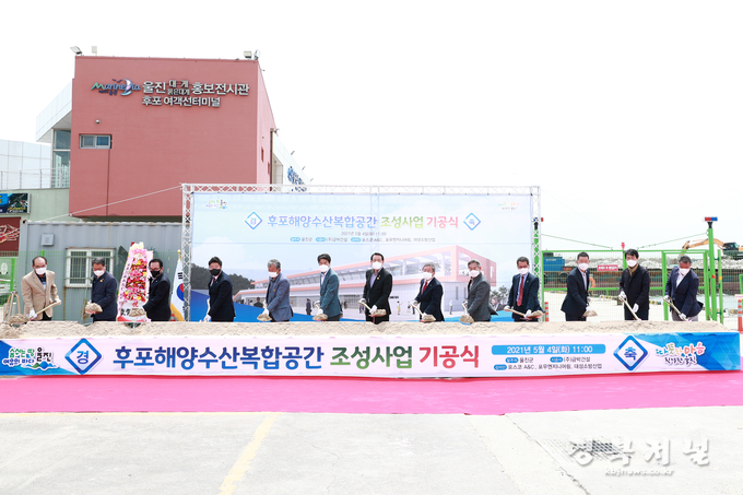 울진군(군수 전찬걸)은 지난 4일 후포 여객선 터미널 일원에서 도·군의원, 각종 단체장 등이 참석한 가운데 후포 해양수산복합공간 조성사업 기공식을 개최했다.