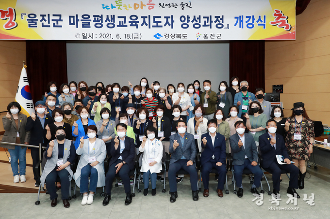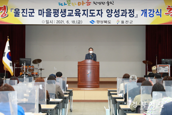 울진군(군수 전찬걸)은 수강생과 관계자들이 참석한 가운데 지난 18일 울진군종합복지회관(4층 대강당)에서「2021년 울진군 마을평생교육지도자 양성과정」개강식을 개최하였다.