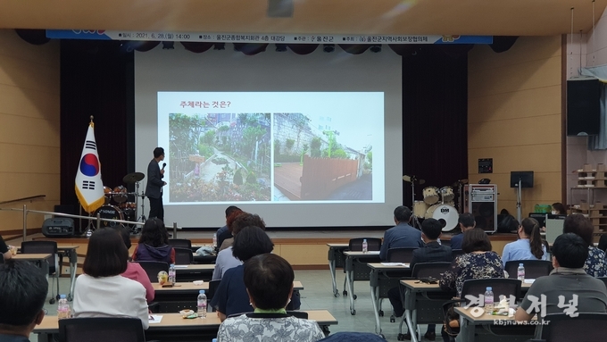 울진군(군수 전찬걸)은 지난 28일 지역사회보장협의체(전병호 민간위원장) 주관으로 울진군종합복지회관 4층 대강당에서 읍면 지역사회보장협의체 위원 50명이 참석한 가운데 제1기 울진군 복지아카데미를 개최했다고 밝혔다.