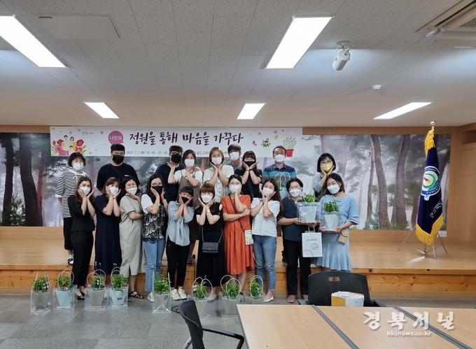 이번 부모교육 프로그램은 학부모들의 가족정원을 꾸미는 과정을 통해 자아존중감을 고취시키며, 긍정적 자아를 형성하여 가족의 소중함을 알고 행복감 상승을 도모하기 위해 기획되었다. 학부모들은 서로 숲의 나무가 되어보는 신체활동을 통해 가족의 소중함을 알아가는 시간을 가졌으며, 서로 만든 작품을 감상한 뒤 설명하며 서로를 이해하는 시간을 통해 정서적 안정을 도모하였다.