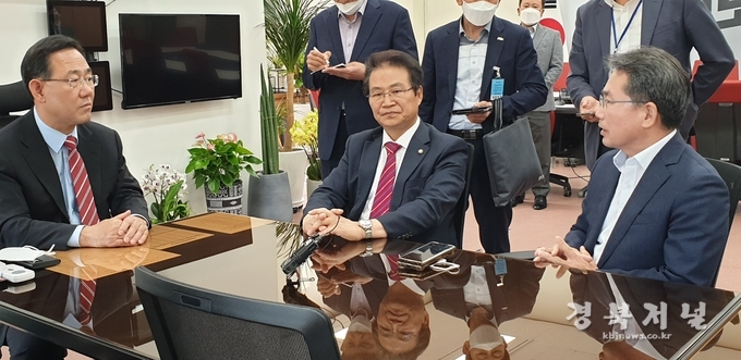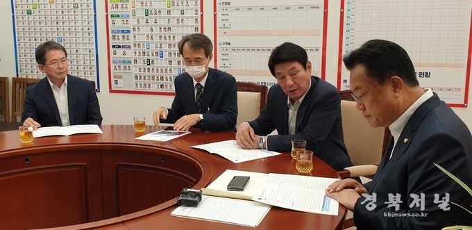 김진열 군위군수가 30일 국민의힘 원내대표실에서 주호영 원내대표 주재로 김용판 대구시당위원장, 강대식 의원(대구 동구을)과 회동을 갖고 대구편입 법률안의 11월 국회 처리 합의를 이끌어냈다.