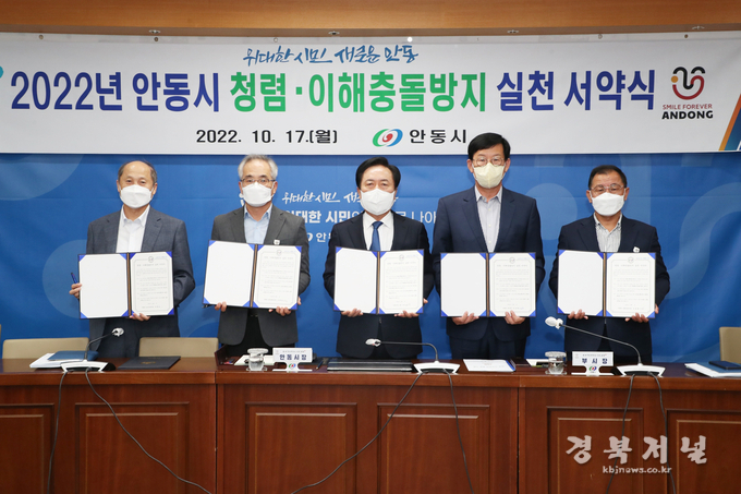 안동시는 10월 17일 안동시청 웅부관 소통실에서『2022년 안동시 청렴·이해충돌방지 실천 서약식』을 개최했다.