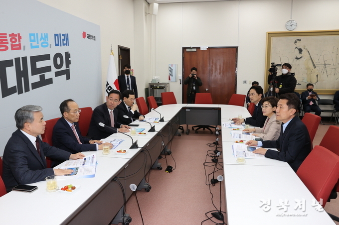 이강덕 포항시장은 24일 국회에서 김정재ㆍ김병욱 의원과 함께 주호영 국민의힘 원내대표, 추경호 경제부총리, 이종섭 국방부장관, 이창양 산업통상자원부 장관과 간담회를 가지면서 산업위기 선제대응 지역의 조속한 지정과 이차전지 특화단지 조성 및 영일만대교 건설을 위한 사업지원을 건의했다.
