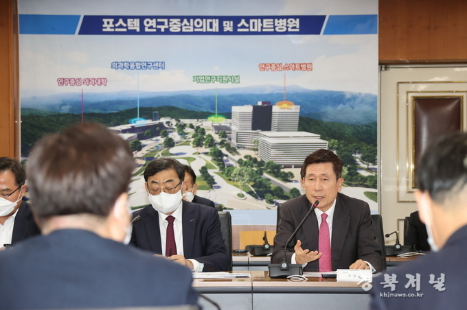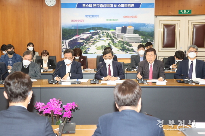 포항시는 보건복지부, 경북도, 포스텍과 함께 21일 포스텍 본관 대회의실에서 ‘보건복지부 장관 의사과학자 양성 간담회’를 개최해 포스텍 연구중심 의과대학 설립 공감대 형성의 장을 마련했다.