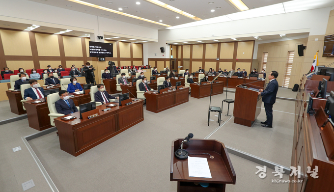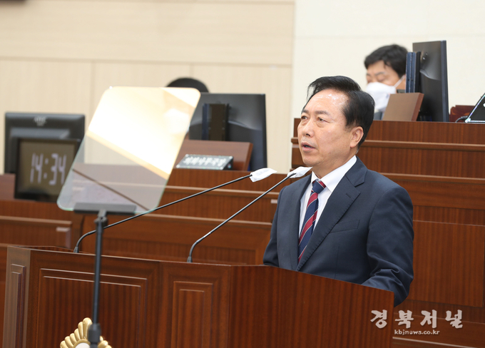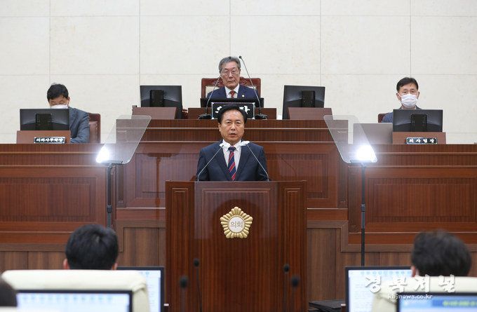 권기창 안동시장이 21일 안동시의회 본회의장에서 열린 '제238회 안동시의회(제2차 정례회)'에서 시정연설을 통해 민선8기 주요 성과, 내년도 시정 운영 방향 등을 밝혔다.