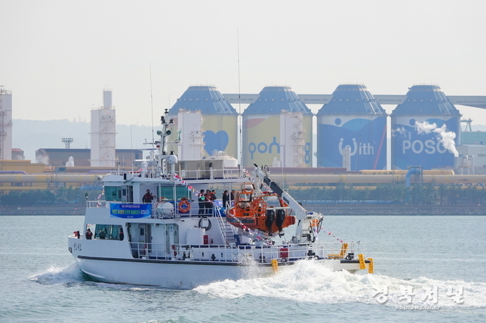 참석자들은 새로 건조된 행정선을 둘러보며 선장을 비롯한 항해사, 기관사들에게 직접 내부 구성에 대한 설명을 듣고, 실제 해역으로 순시 운항하는 시간을 가졌다. 순시 해역으로 나가는 과정에서 이강덕 시장은 행정선을 출항시키며, 어업인과 직접 교신하고 안전 운항과 안전 조업을 당부하기도 했다.
