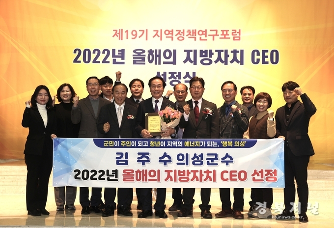 김주수 의성군수가 한국공공자치연구원이 주최한 ‘올해의 지방자치 CEO’에 선정됐다. 한국공공자치연구원은 매년 지역발전 및 자치행정에 탁월한 업적을 이룬 자치단체장을 올해의 지방자치 CEO로 선정하여 발표하고 있다.