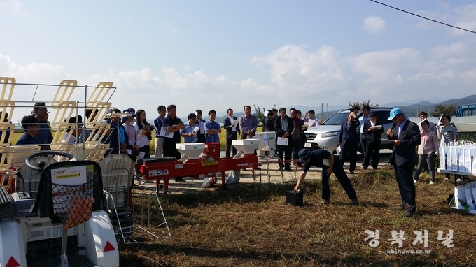 [영덕] 영덕군(군수 이희진)은 지난 9월 23일 병곡면 거무역리 김의용 농가 포장에서 시범단지 회원, 쌀전업농과 금년도 도단위 벼농사 종합평가단(벼농사 전문지도사) 등 50여명이 참석한 가운데 벼농사분야 국비사업으로 추진한 「벼 포트육묘 재배기술 시범사업 평가회」를 가졌다