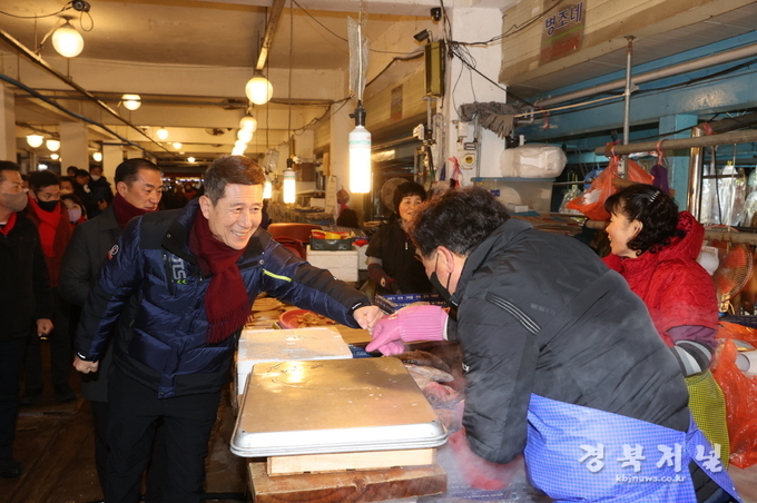 특히, 시장 내 철저한 방역 수칙 준수로 안전한 환경을 조성해 줄 것을 거듭 강조하는 한편, 어민들에게 설 명절을 잘 보내라는 희망찬 격려 메시지를 전달했다.